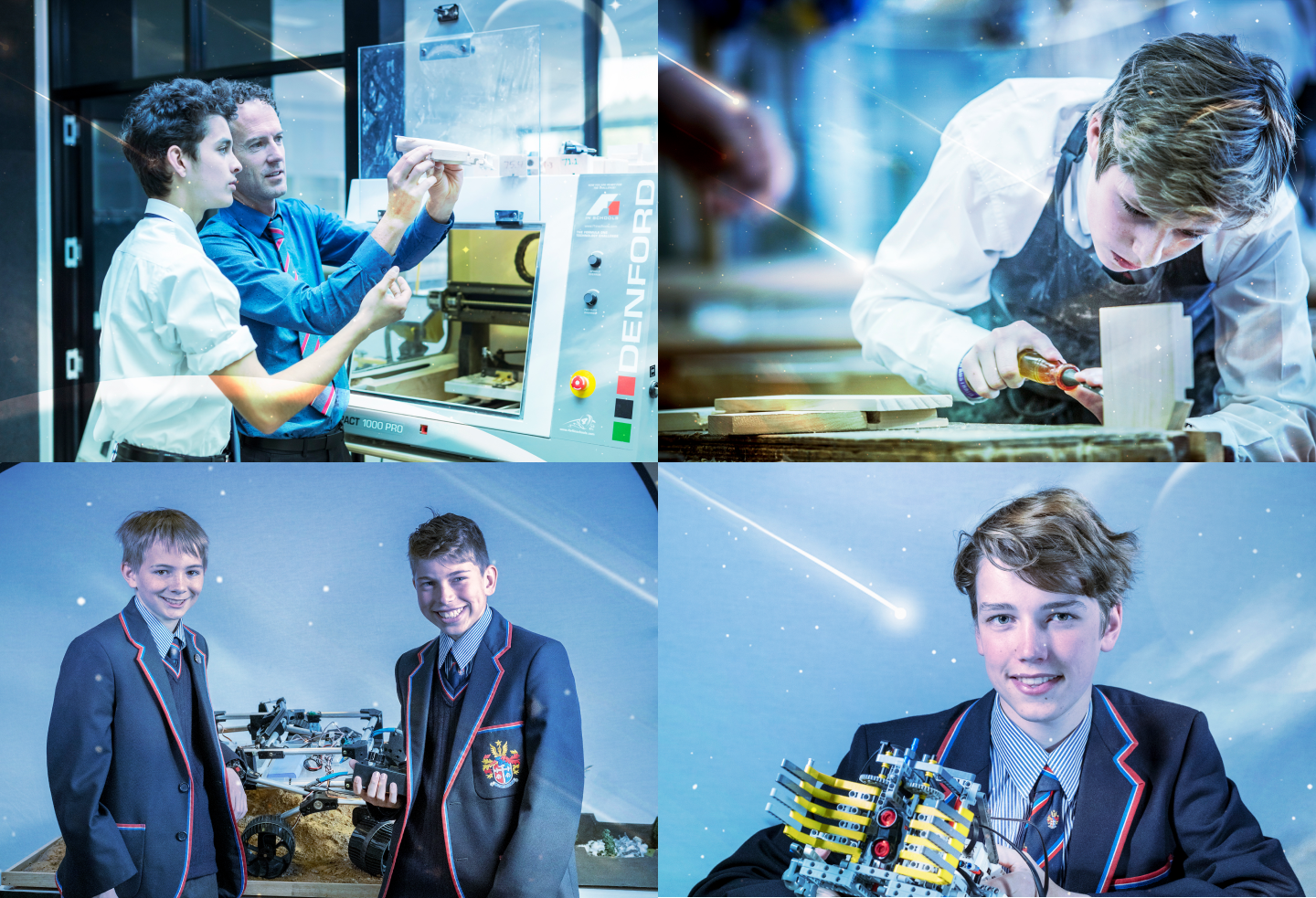 Photography was important for the campaign to show the boys working in class and using design thinking tools for hands-on projects. Photography for the campaign was manipulated to include a colour wash placed over the image, and some visual elements to create consistency.