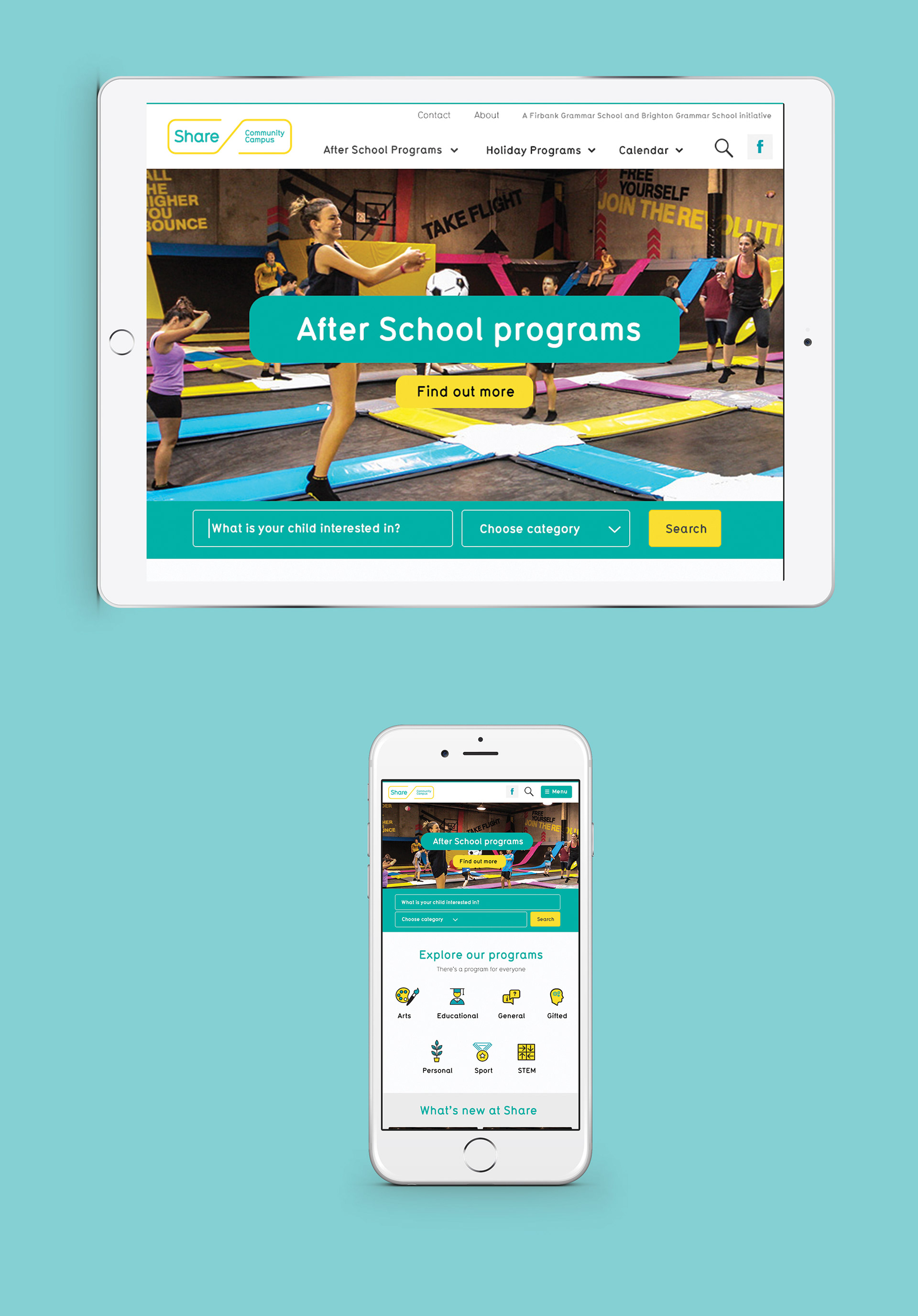 Share Community Campus is a holiday and after-school care program for kids in the Bayside area in Melbourne. They were experiencing some difficulties with their existing website. Their existing website was developed in 2012 was not responsive or mobile friendly. Share engaged Fluid Design to redevelop their visual identity and the brand changes needed to be reflected online. A digital presence was created that featured a custom calendar, detailed search capabilities so the audience could easily find programs for their children. It has resulted in a 45% spike in online visits and increased enrolments.
